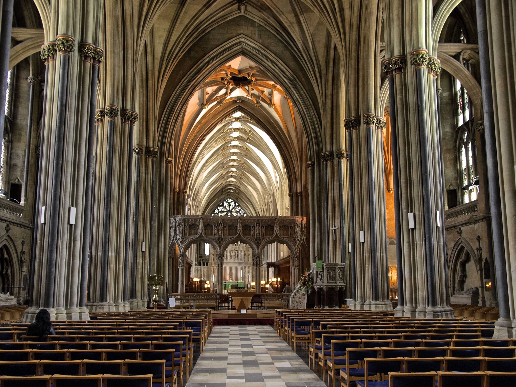 Zurück zu dem eigentlichen Teil. Kurz bevor wir angekommen sind, hat es in Strömen geschüttet . Als wir jedoch ausgestiegen sind, hatte der Regen aufgehört und wir konnten trockenen Fußes uns einen Überblick über die Stadt verschaffen und durch ein paar Straßen laufen. Da dann die Sonne etwas herausgekommen ist, haben wir beschlossen, dass wir erst die Cathedral besichtigen. Die Cathedral stammt aus dem 13ten Jahrhundert und dort befindet sich eines der vier noch erhaltenen Exemplare der Magna Carta. Sie ist sehr schön und beeindruckend, sowohl von außen, als auch von innen.