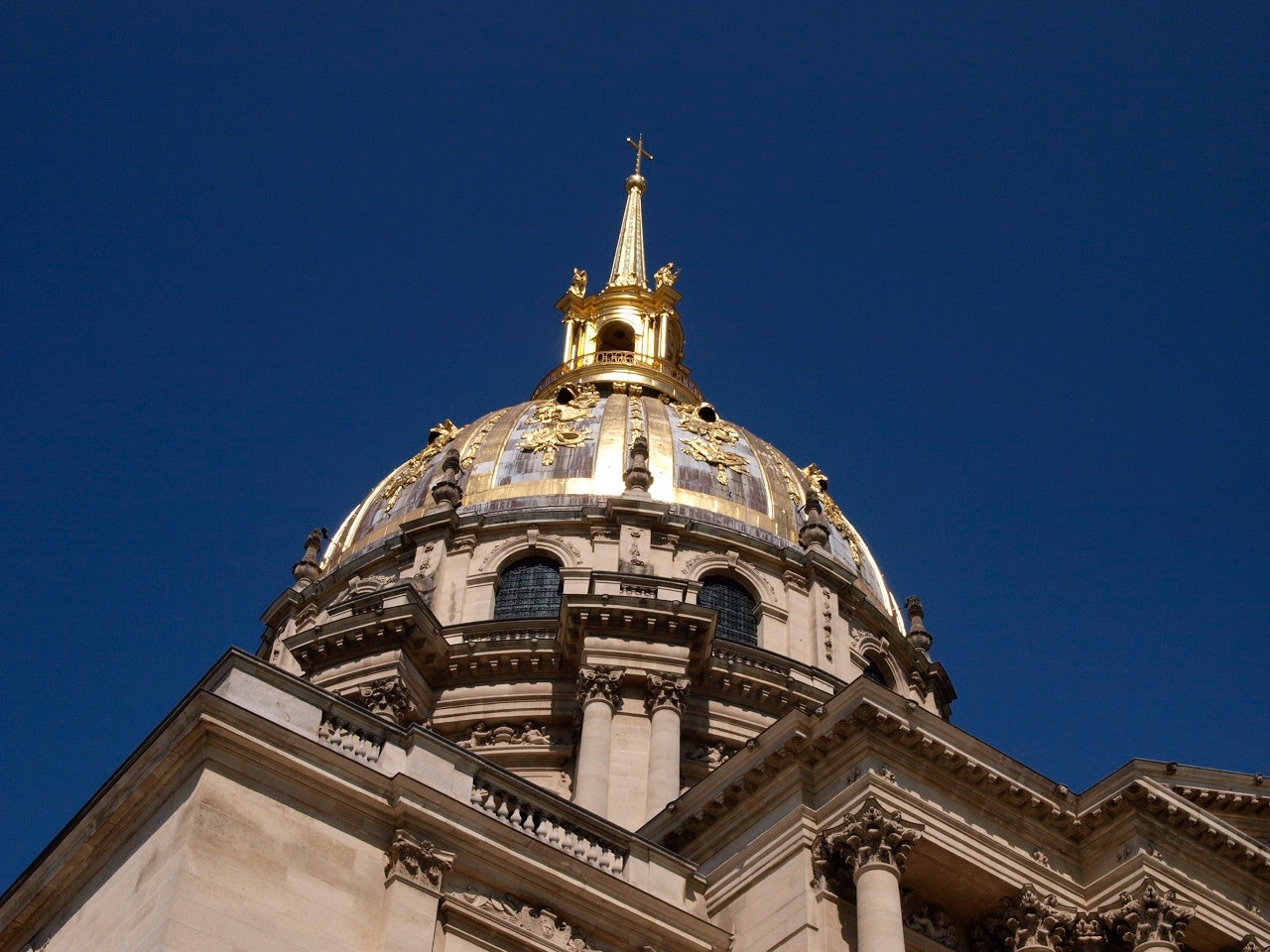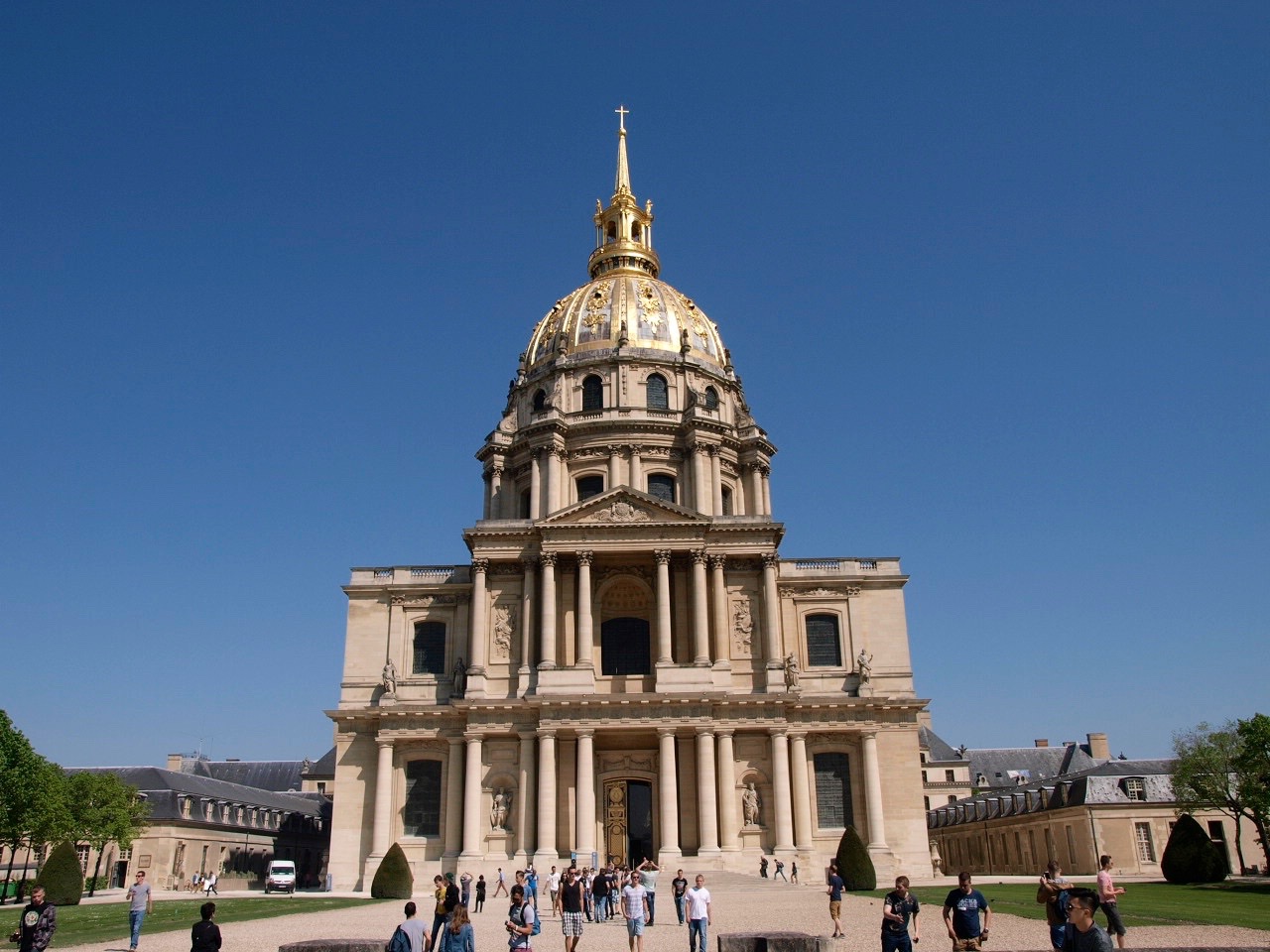 Dieses ist der Invalidendom. Wenn ich dieses schöne Gebäude sehe, würde mir nicht in den Sinn kommen, dass es eine Grabstätte ist. Auf der linken Seite erkennt man den Beginn des Gebäudes vom Armeemuseum.