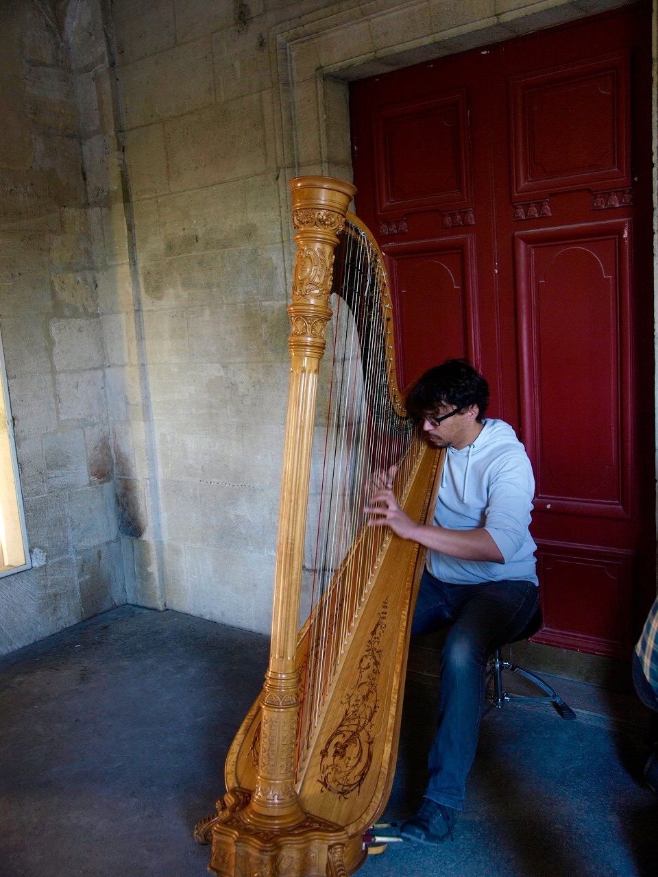 Diesen Harpen Spieler haben wir in einem Laubengang gefunden. Der Laubengang war umrandetet einen Platz mit Park in der Mitte und das ganze wirkte irgendwie wie aus einer anderen Welt.